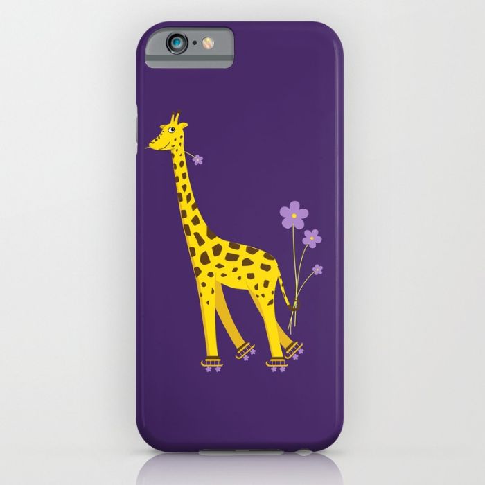 Purple skating cartoon giraffe iPhone case. Get it here.
