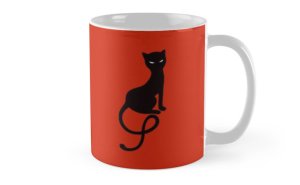 I’ve made a lot of designs with the little evil feline since then. People get it most on T-Shirts and phone cases. The mugs and leggings at Society6 have been also bought recently.