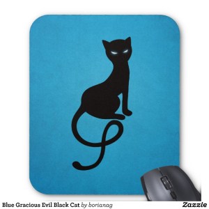 This evil black cat has glowing eyes and beautifully curled tail. It is a vector illustration with a grunge textured background in a varied color – purple, red, blue, sometimes light green. Black kitties are beautiful, though sometimes evil, as are all cats in general. I love them. This is a design for all the cat lovers out there who also like darker stuff. Check out some of the designs with the evil kitty at my online stores: