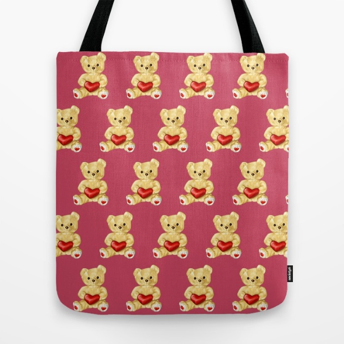 Pink teddy bear pattern tote bag / Society6. Buy it here.