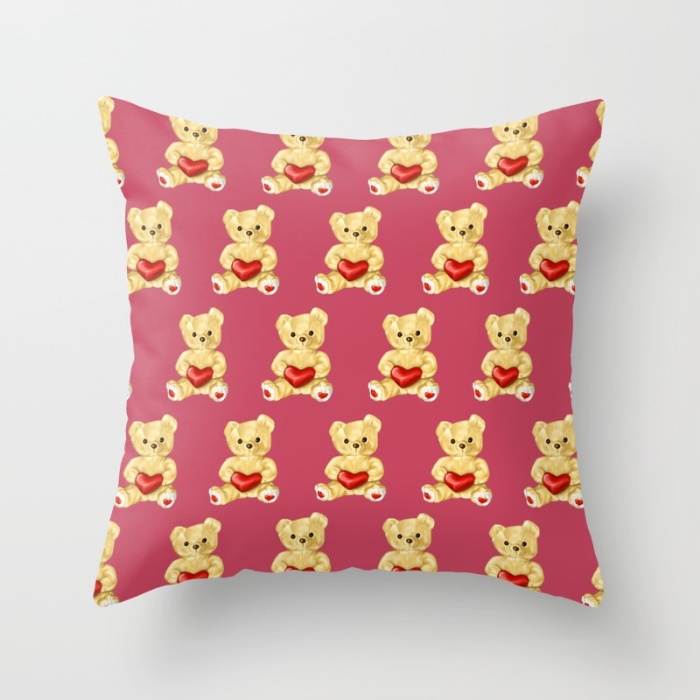 Pink teddy bear pattern pillow / Society6. Buy it here.
