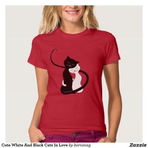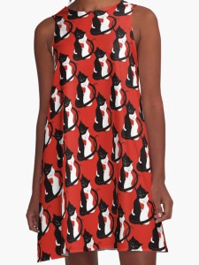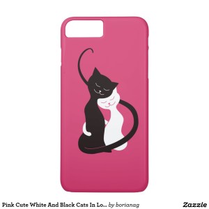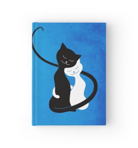 These love cats hug each other with their tails. It’s a cute illustration of a black and white cat which I’ve drawn some time ago. I had a project for a music cover of love songs compilation back then. Being a cat lover myself, this is what I came up with. Later I created lots of products with these cute kitties, too. I particularly like how they look on red, blue and pink background. So these are the colors I chose for the products.