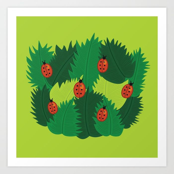 Green leaves and ladybugs art print / Society6