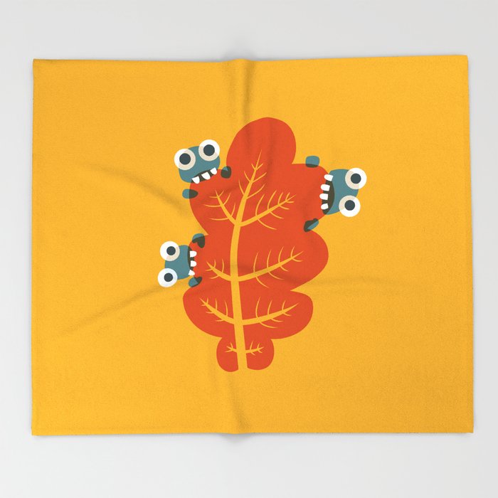Autumn leaf fun cartoon illustration of an orange oak leaf and three blue bugs eating it. They have big eyes, big teeth and are very, very cute. This cute seasonal design is great for kids, as well as people who love fall season and its warm colors. Added art prints and products to my Society6 and Redbubble stores.