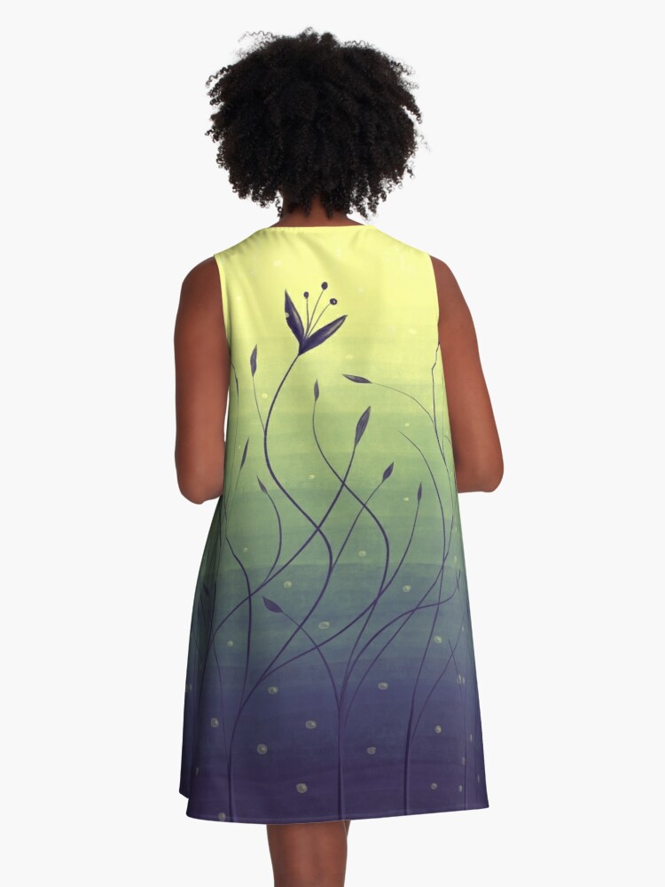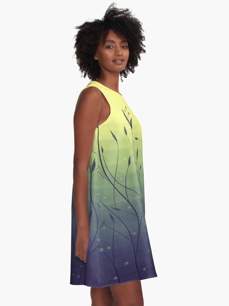 Water plants botanical art – abstract digital illustration of strange algae in a lake with yellow-green water and bubbles. These flowering plants are wavy, elegant and beautiful. Whole design is more abstract, just gives a feeling of underwater flora. The habitat of these weird submerged flowers maybe seems more like a swamp than a lake. In any case, these weeds feel good in it and thrive peacefully. Botanical abstraction really gives a lot ideas for art.