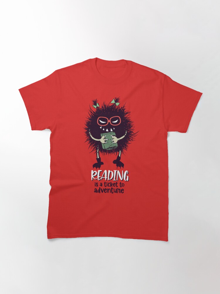 Reading is a ticket to adventure – created a new design with one of my characters featuring a typographic treatment of this quote. It makes a great teacher shirt as well as other teacher gifts. It’s great for a book lover and everyone who loves to read and want to inspire the world to do it, too. Check clothes and other fun stuff with this bookish design:
