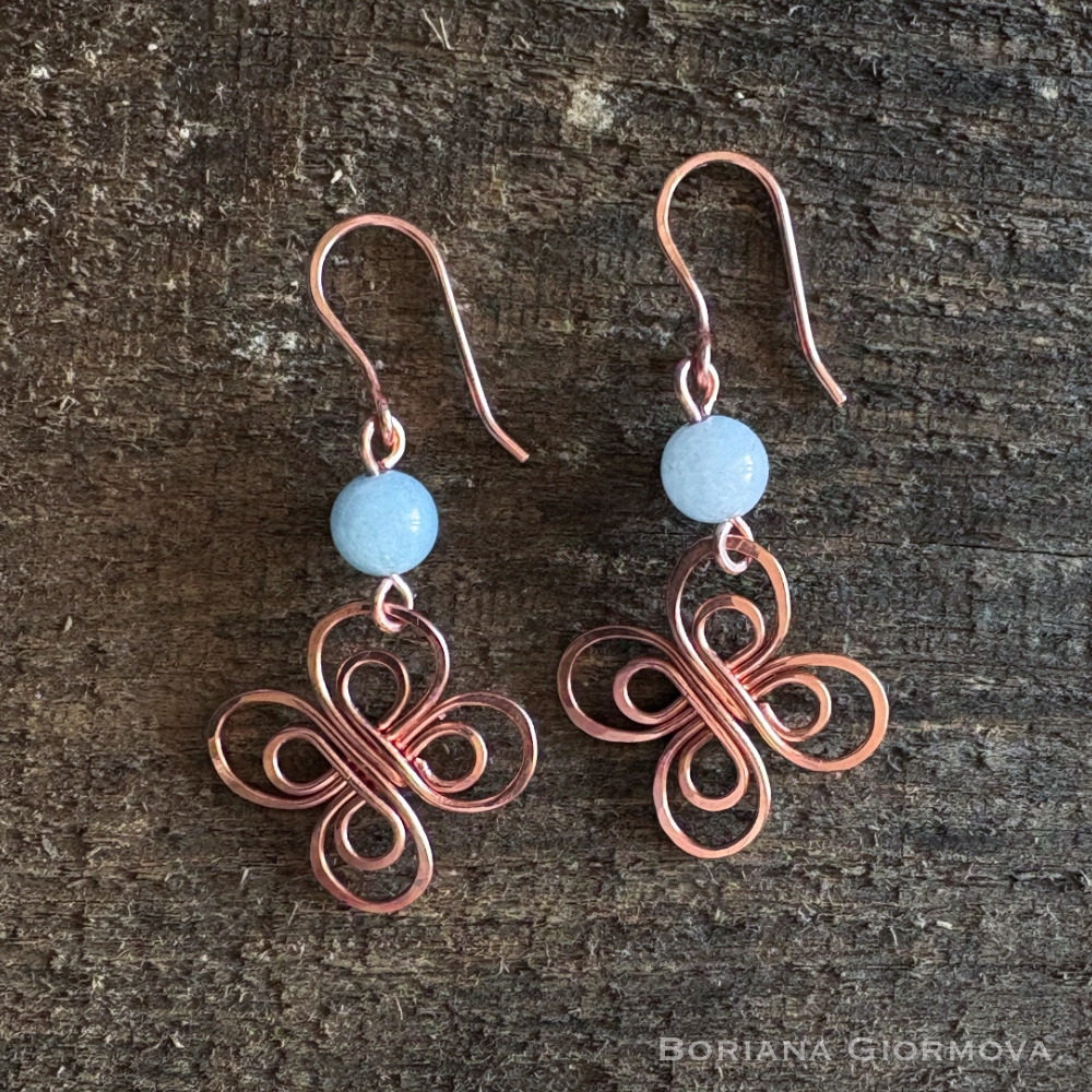 As a relatively new creative endeavour to me, I decided to share my jewelry making journey starting today, at the exact moment I am now. Which is a bit of a fixation on making small simple flowers from wire. I love them – simple shapes, beautiful hammered elements for making earrings (currently) and bracelets (maybe soon).