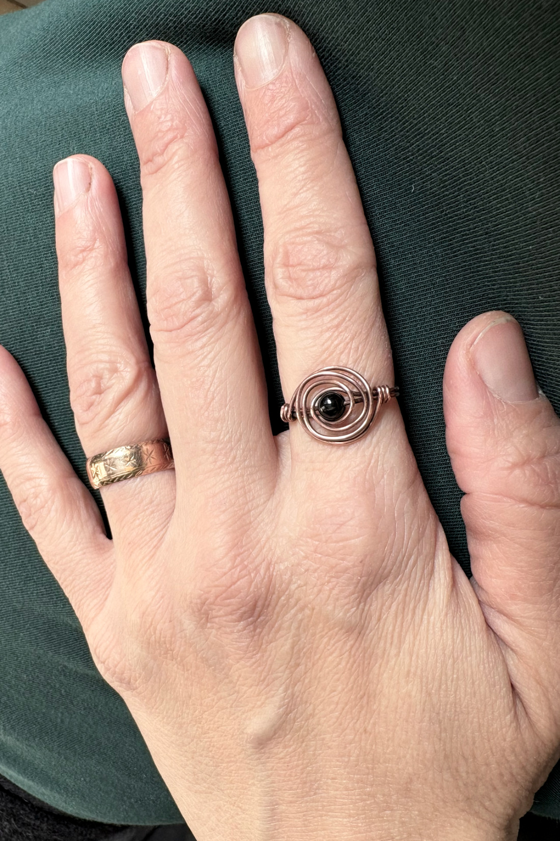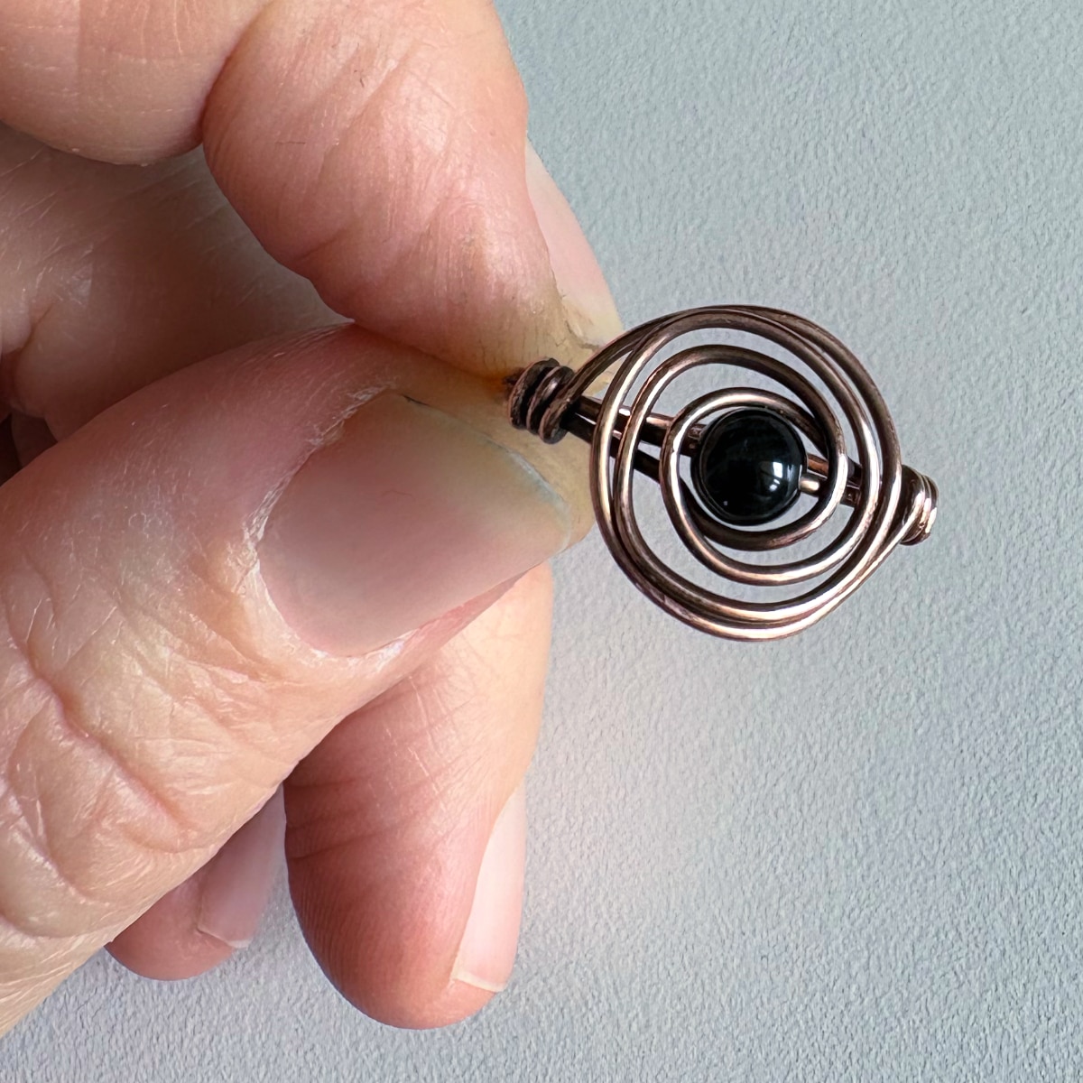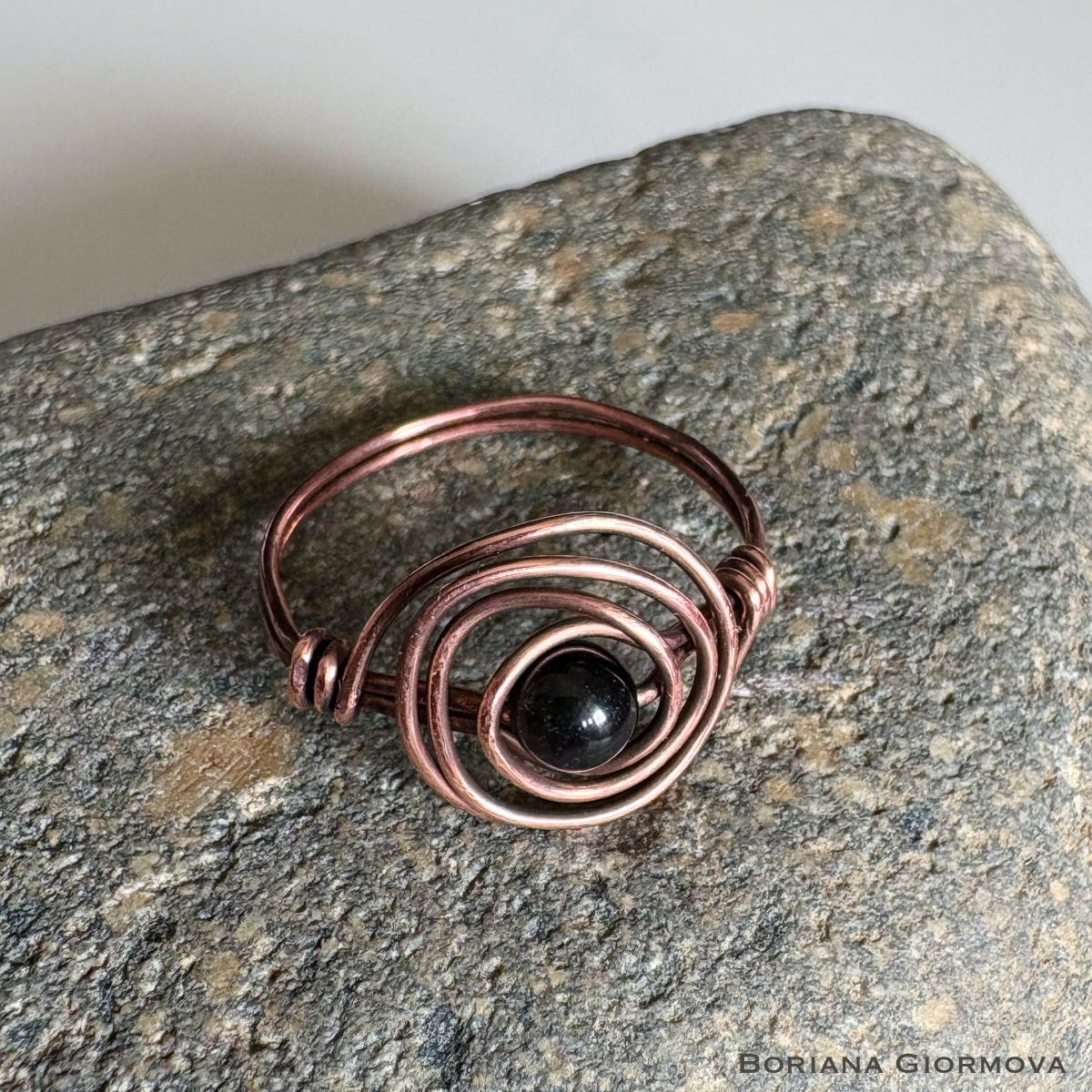 I made this ring for myself from 22 gauge (0.8 mm) copper wire—just 23 cm of it, wrapped around a small 4 mm black obsidian stone. It started as a simple piece of wire, but after shaping, polishing, and a bit of patience, it turned into something I really love.