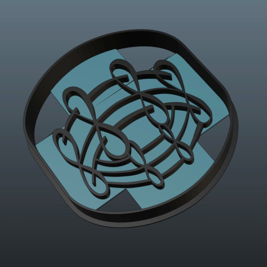 The process started with vectorizing my original drawing, then bringing it into Blender to create a 3D model. Actually, I designed it as a polymer clay cutter, but I thought it should be able to function for a stamp, too. Depends on the material for printing.