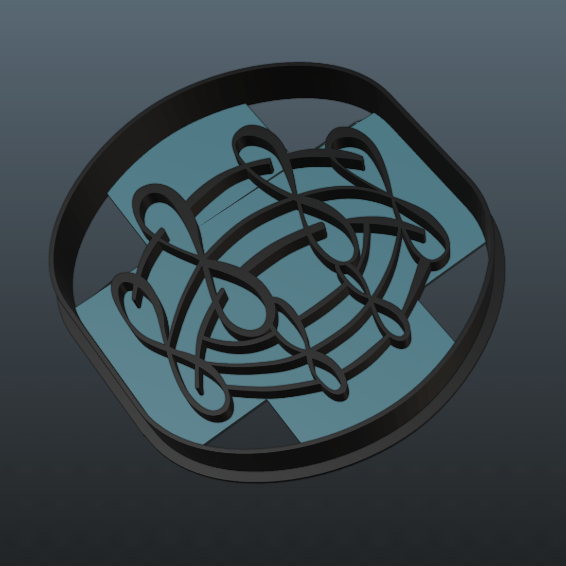 The process started with vectorizing my original drawing, then bringing it into Blender to create a 3D model. Actually, I designed it as a polymer clay cutter, but I thought it should be able to function for a stamp, too. Depends on the material for printing.