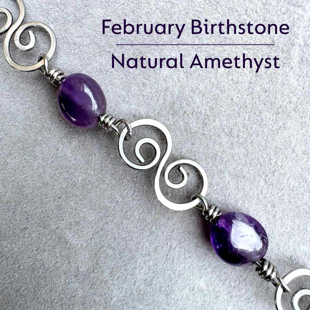 Amethyst is often linked to calmness, reflection, and emotional clarity, and people like it as much for its natural beauty as for its symbolism. I love the contrast of the gorgeous gemstones with the strong, durable steel.