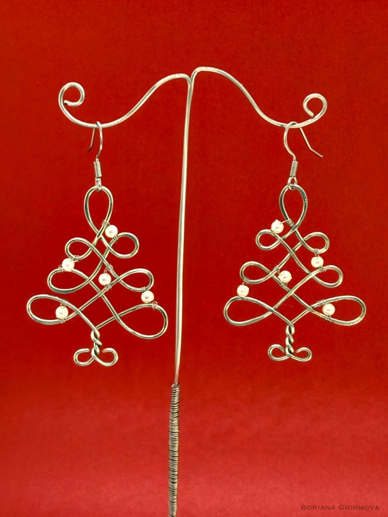И двата варианта са украсени с изкуствени перли и оформени във формата на коледна елха – лесно разпознаваем и подходящ символ за сезона. За кукичките на обеците използвах неръждаема хипоалергенна стомана, за да са подходящи за всички. Това ги прави перфектен избор за подарък – стилни, красиви и удобни за носене.