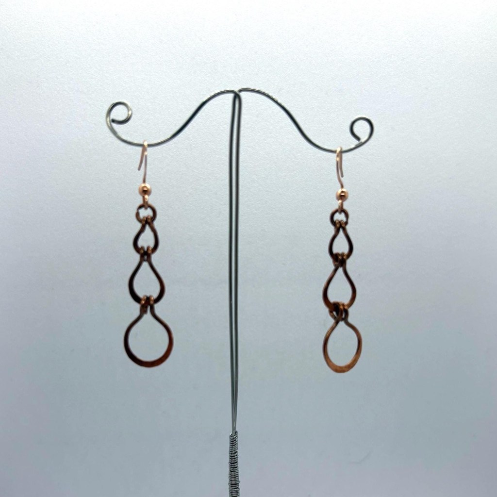 If you love simple, handmade jewelry with a touch of rustic charm, these copper earrings might be just your style. They’re made from slightly oxidized copper with three hammered teardrop-shaped pieces that add a bit of texture and character. The design is simple but has a warmth that works with just about anything you wear.