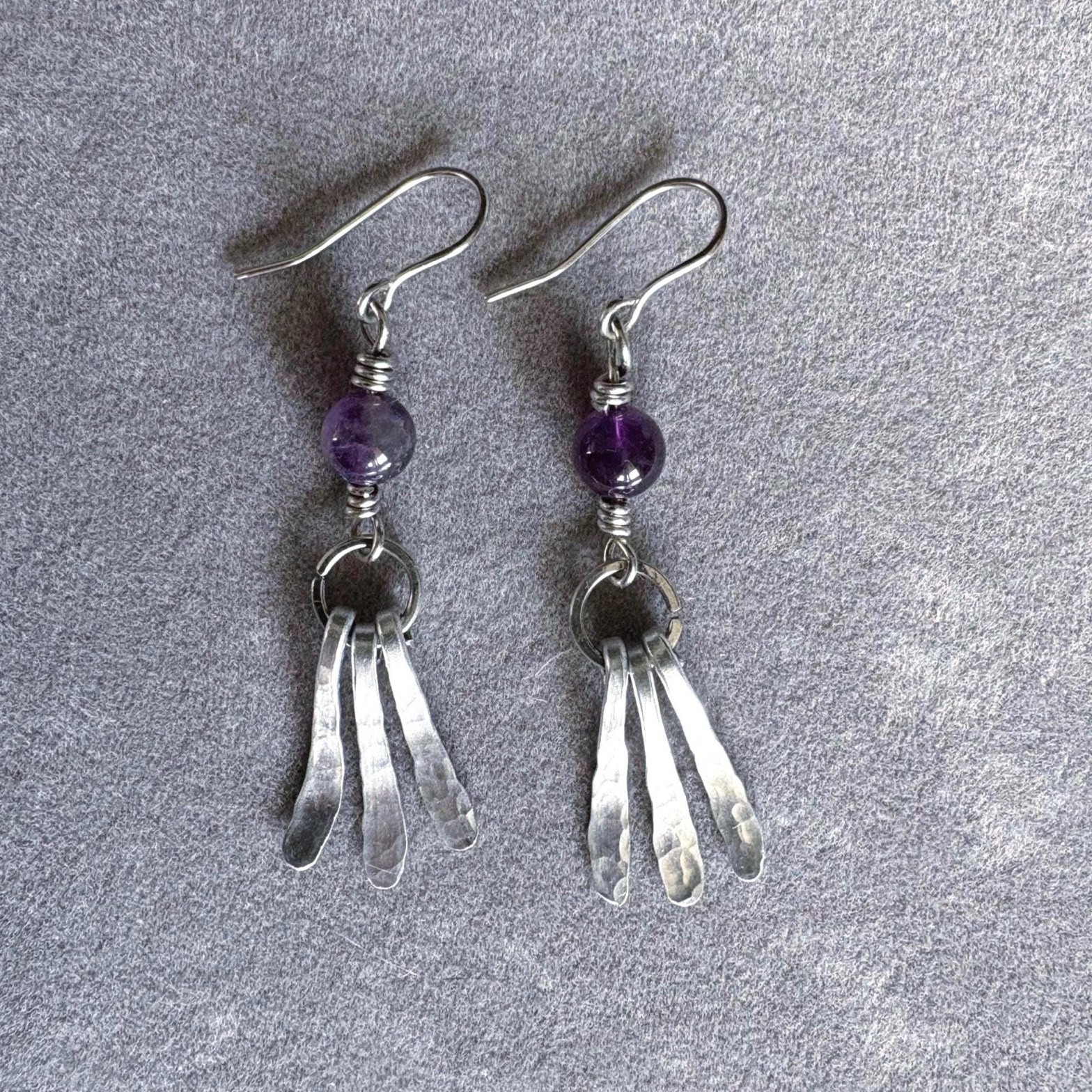 Handmade Elegance: Mixed Metal Amethyst Drop Earrings