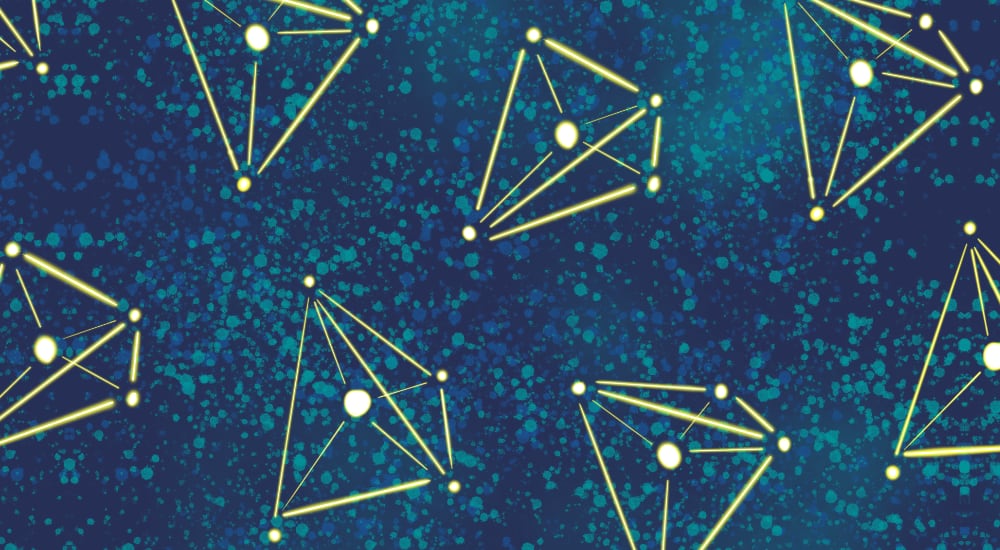 Tetrahedral molecule art – fun constellations in a starry sky which have the tetrahedral geometric shape of some molecules like methane (CH₄), MnO₄, XeO₄, etc. Whatever I do, there comes a moment when I find myself drawing these shapes again and again. My chemistry background frequently goes into my art. This week’s topic of Illustration …