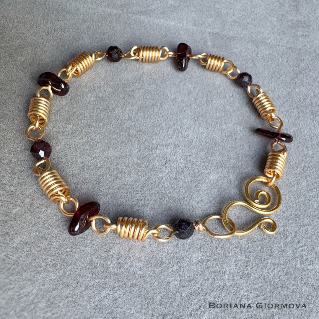 New Bracelet: Garnet and Golden Colored Copper Wire